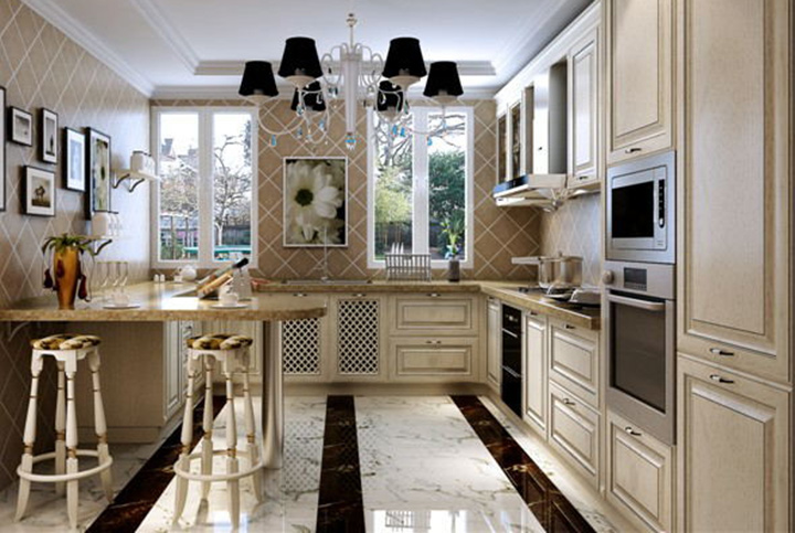 2、實(shí)木復(fù)合櫥柜以實(shí)木拼接料為基材,表面貼實(shí)木皮,同樣能達(dá)到實(shí)木的視覺效果;